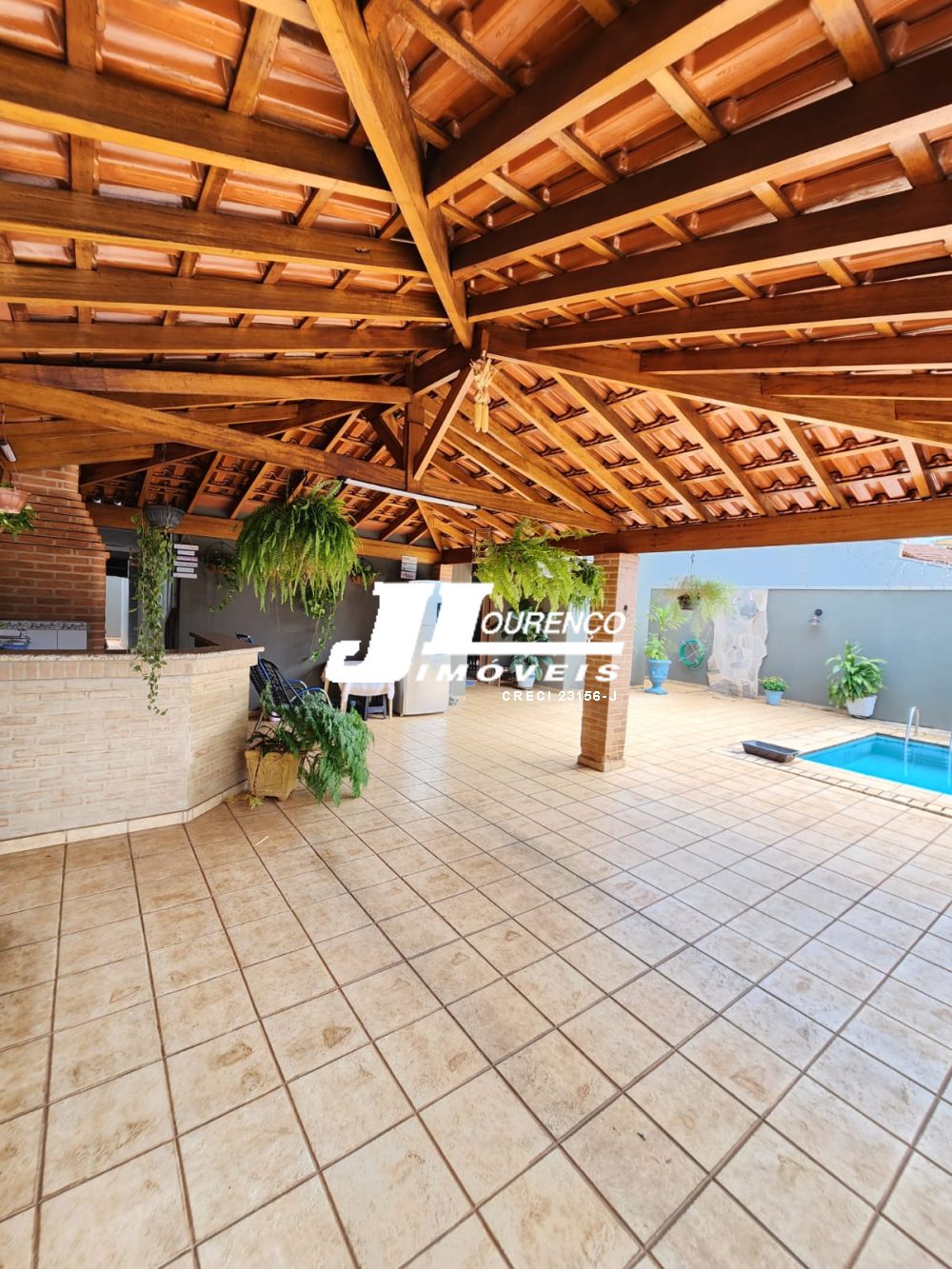 Excelente área de lazer com piscina, churrasqueira e banheiro.