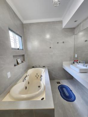 O sobrado consta com 230,00 m2 de construção, no piso superior tem 3 suítes ,closet, sendo 1 suíte master com banheira, sacadas e sala de TV, no piso térreo tem ampla sala de estar, sala de jantar, lavabo, 1 suíte com armário, cozinha planejada, despensa, lavanderia com armários.