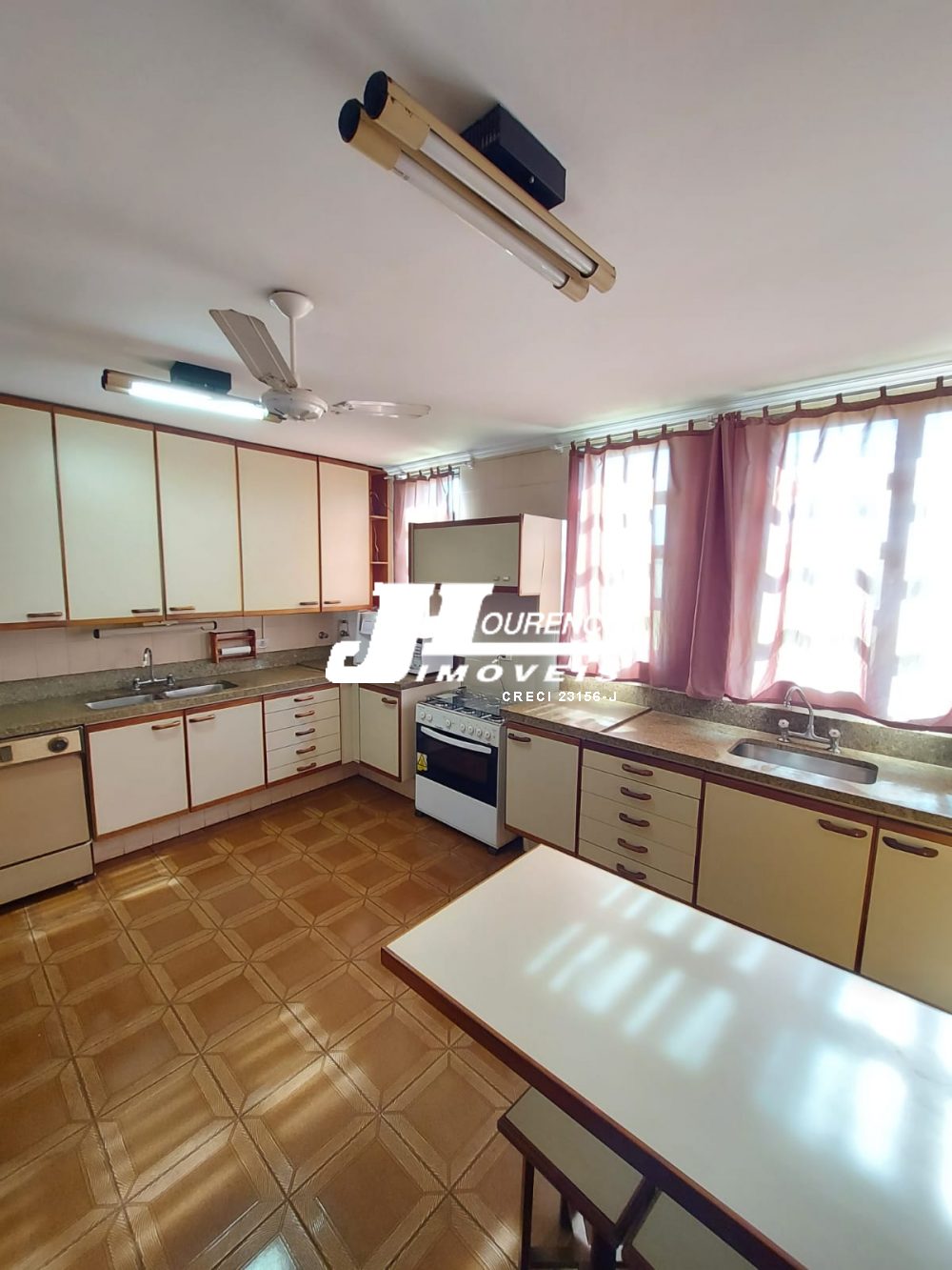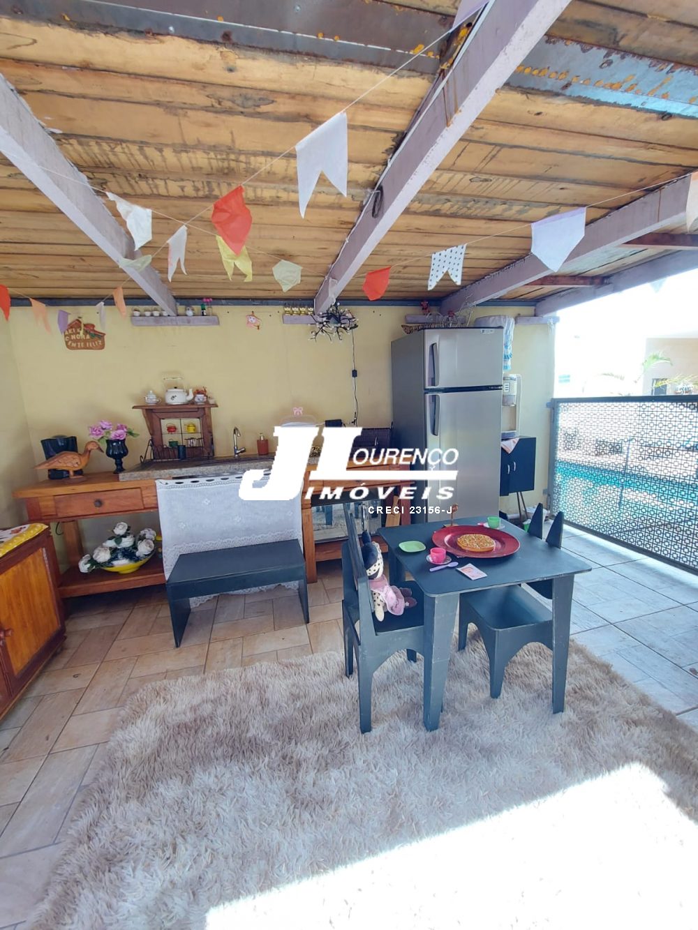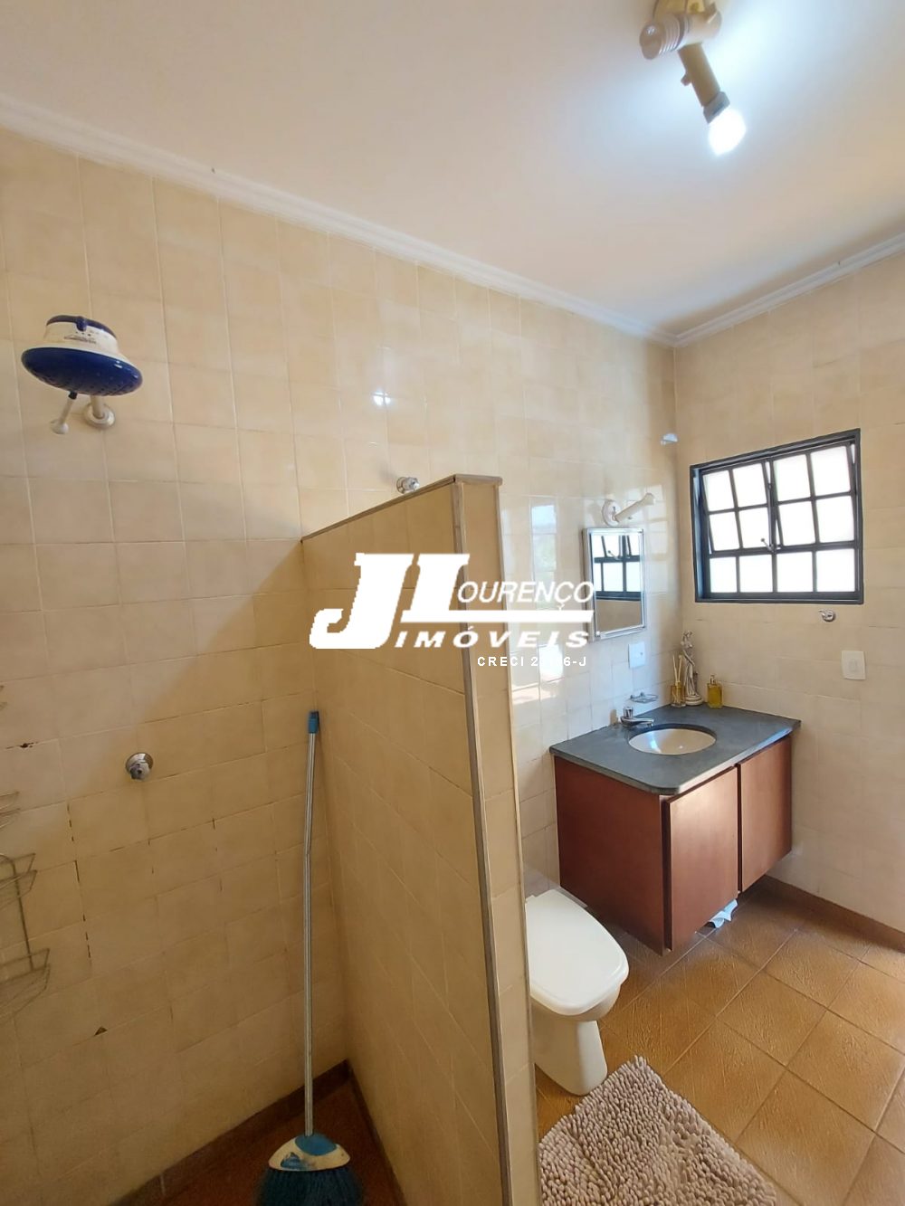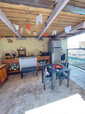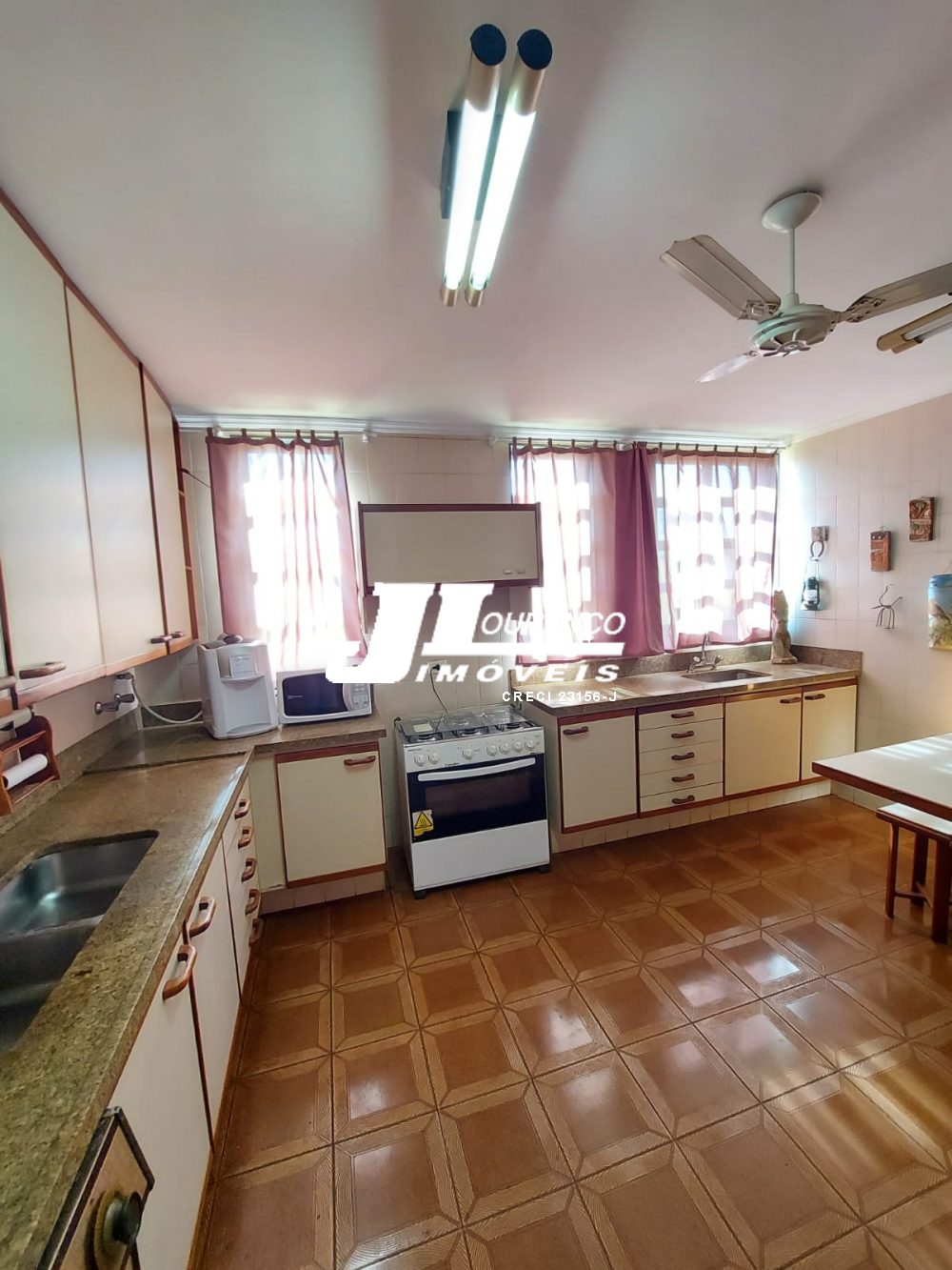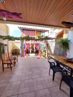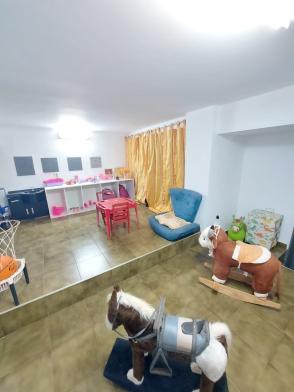 1º piso: escritório com ar, banheiro, copa e sala grande com 3 ambientes com ar condicionado e ventilador, área externa com lavabo, cozinha com duas pias e ventilador, despensa, lavanderia, quarto de empregada com banheiro, canil e uma casa infantil de 2 andares com pia na parte de baixo e sacada em cima, medindo 24 m2