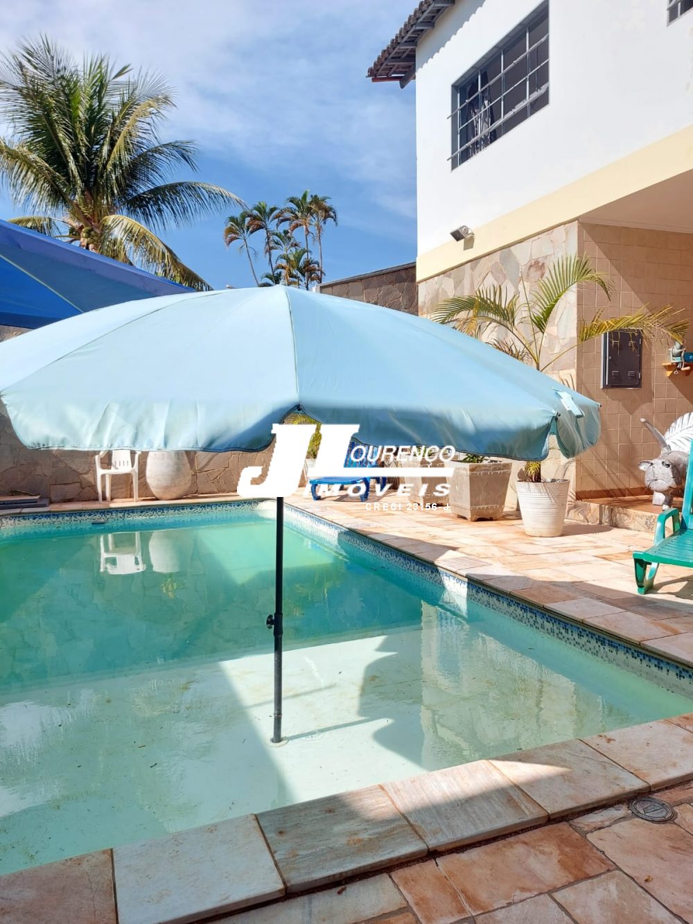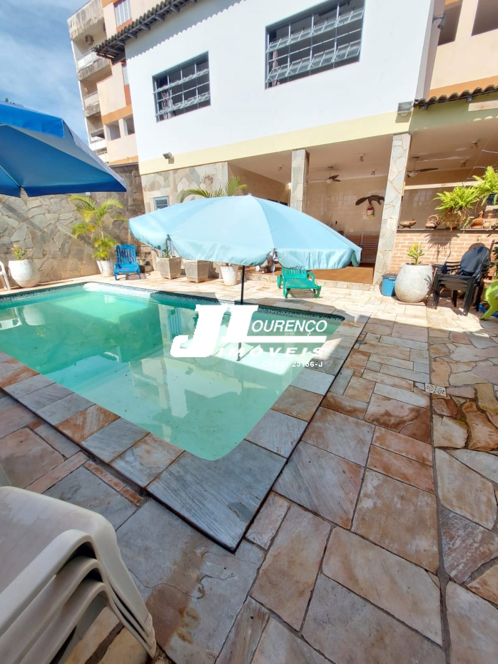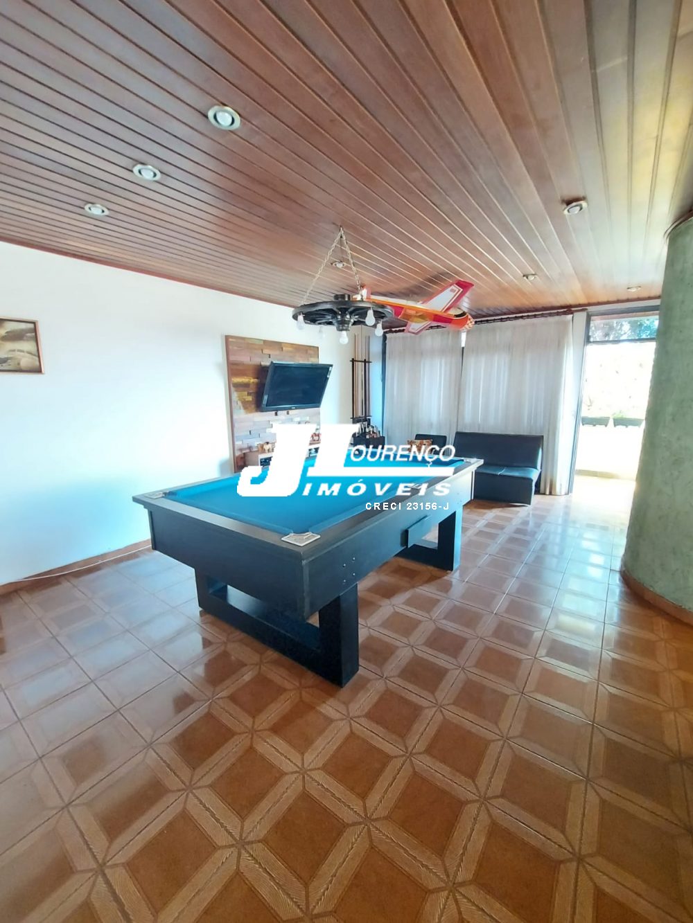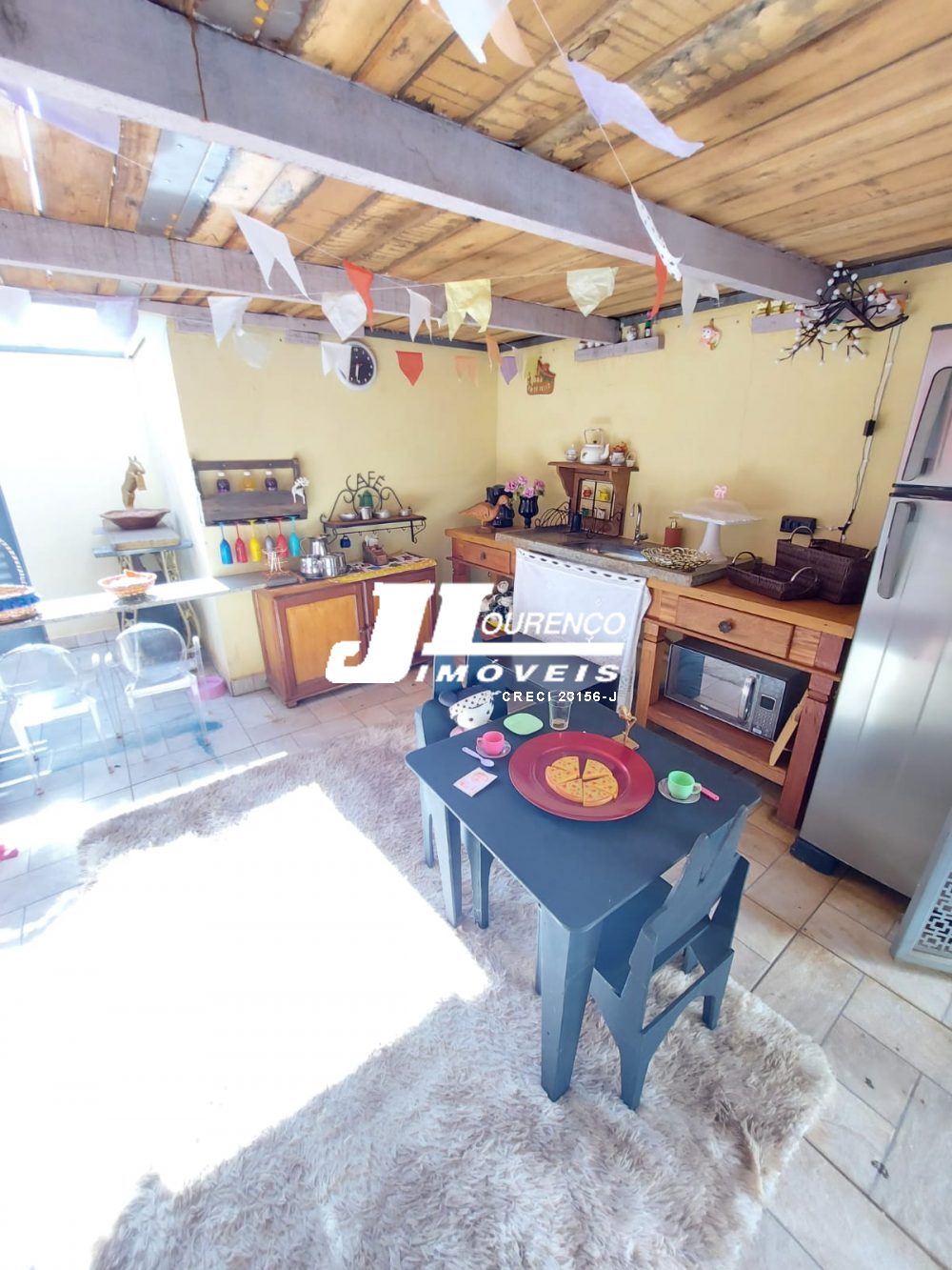 1º piso: escritório com ar, banheiro, copa e sala grande com 3 ambientes com ar condicionado e ventilador, área externa com lavabo, cozinha com duas pias e ventilador, despensa, lavanderia, quarto de empregada com banheiro, canil e uma casa infantil de 2 andares com pia na parte de baixo e sacada em cima, medindo 24 m2