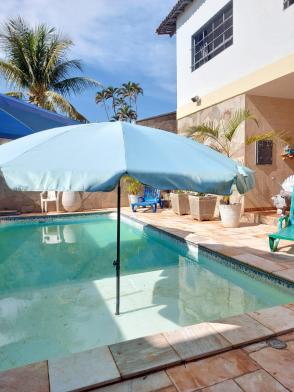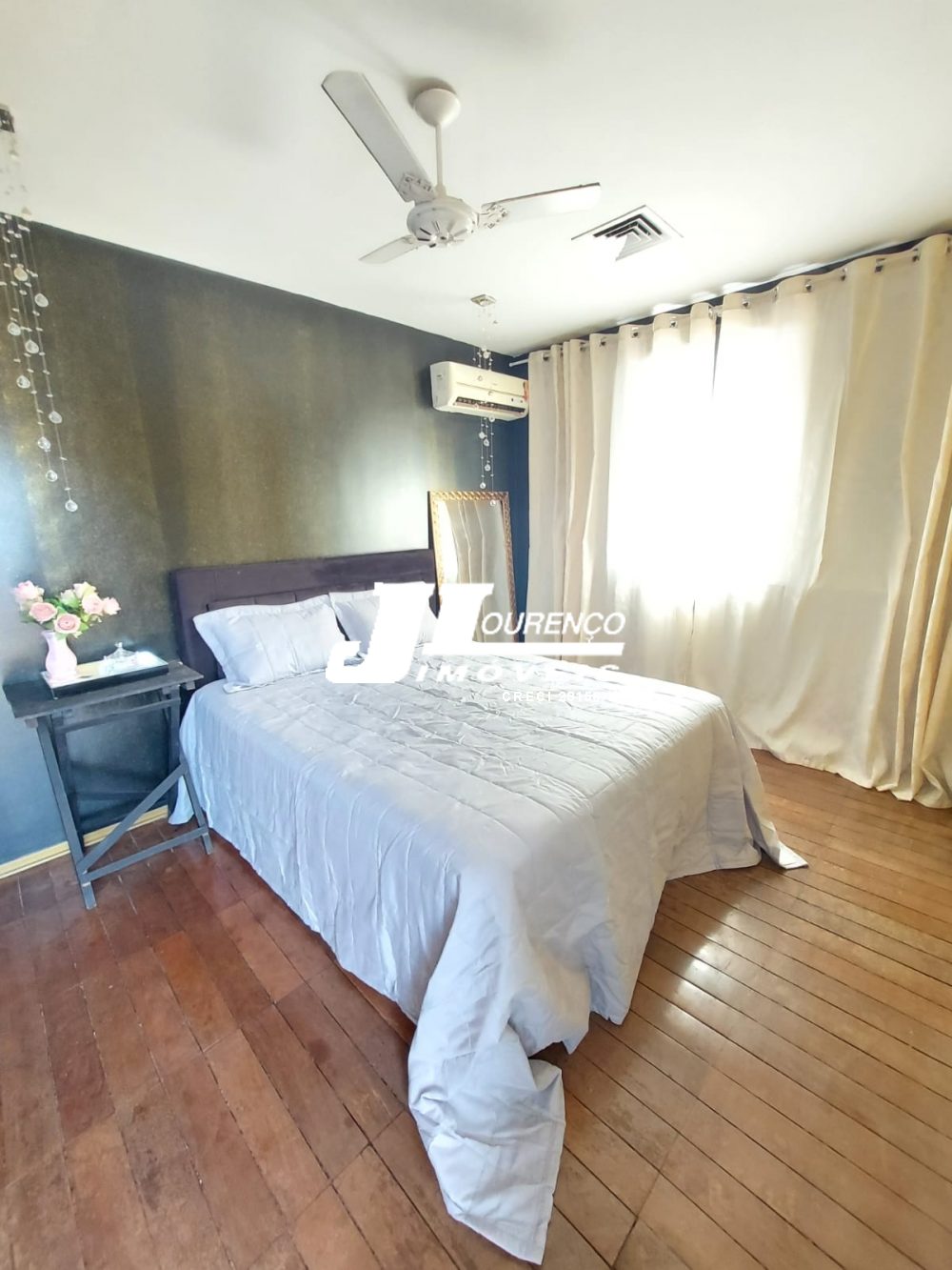 2º piso: 4 quartos com ventiladores e ar condicionado , sendo dois quartos com guarda roupa embutido, e uma suíte com closet e sacada ampla e uma suíte master com closet e sacada, uma sala com ar condicionado , armários embutidos no corredor, banheiro social, uma mini cozinha, um quarto/ roupeiro