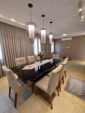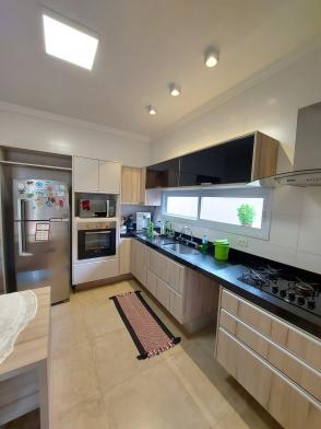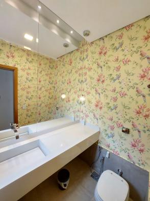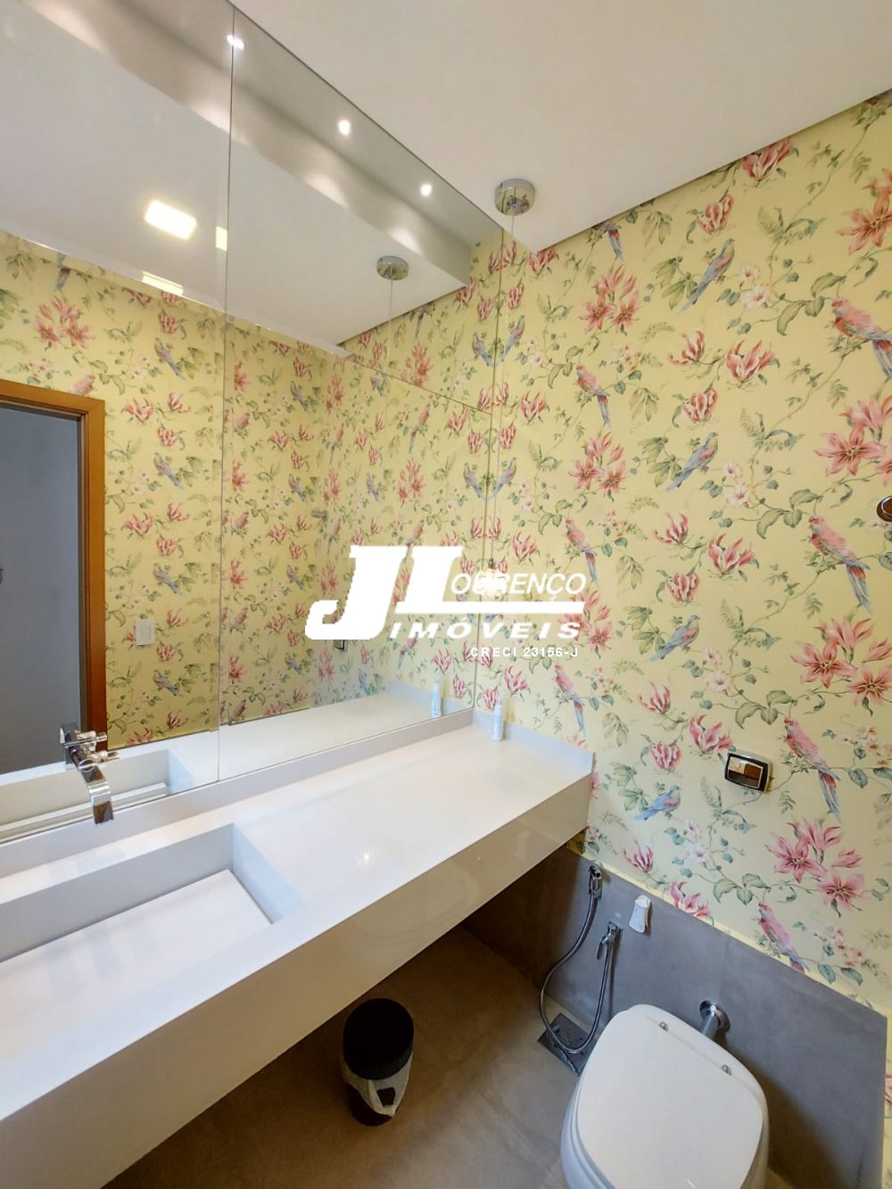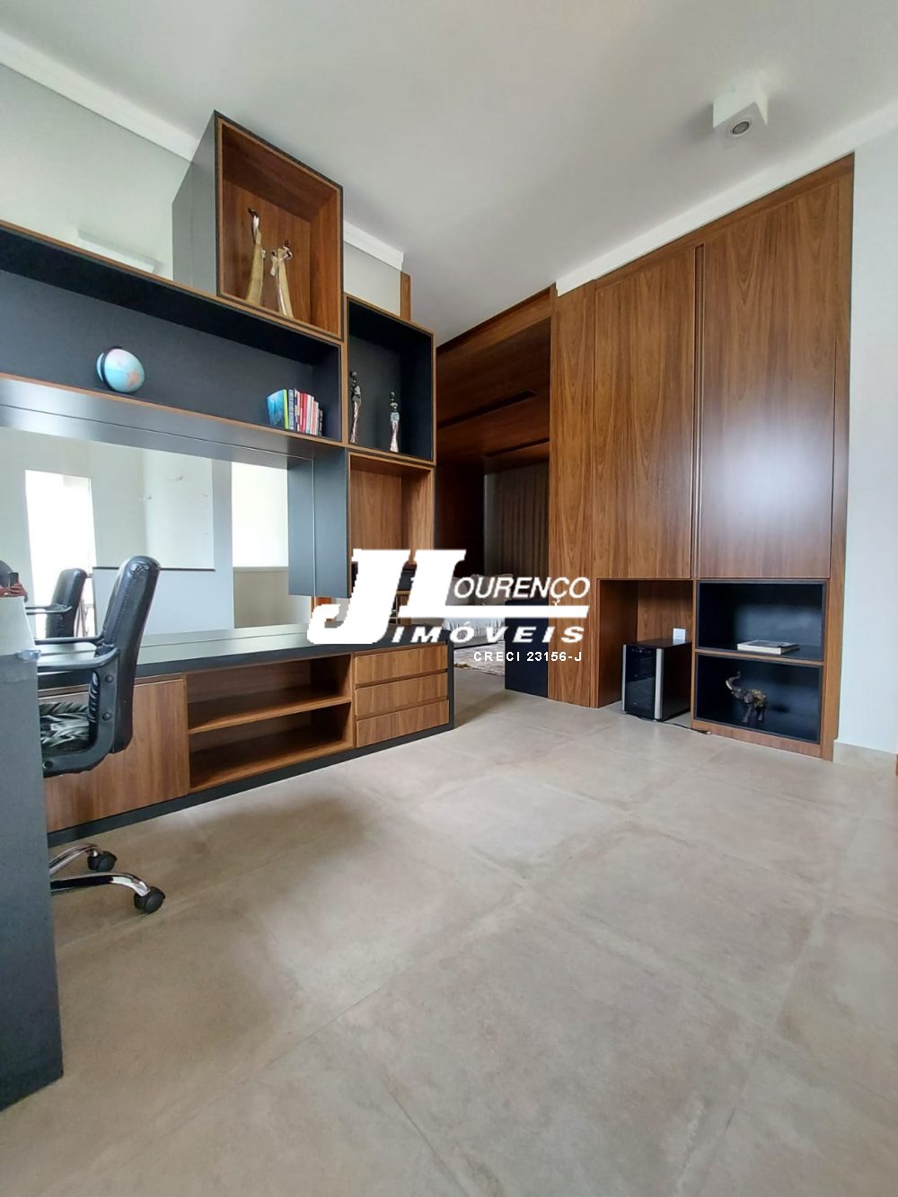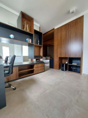 São 3 suites, sendo 1 suíte com closet e sacada, armários, lavabo, escritório, sala 2 ambientes, excelente sala de TV na parte superior, cozinha planejada e lavanderia.