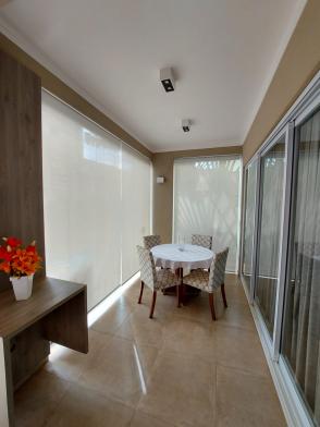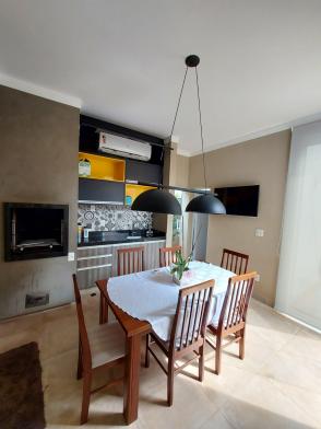 Área gourmet com churrasqueira e para seu maior conforto, com fechamento em blindex e ar condicionado, piscina aquecida e banheiro.