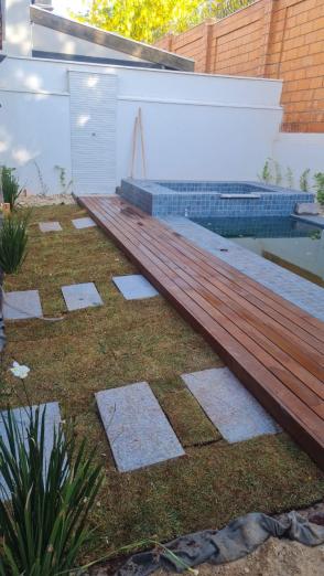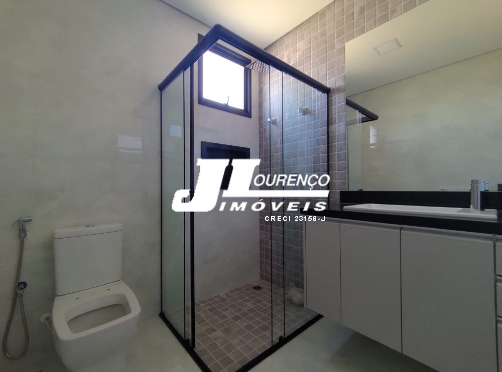 Na parte térrea do sobrado, sala 2 ambientes integrada com a cozinha, lavabo, varanda gourmet com churrasqueira e piscina com hidromassagem e na parte superior 3 suítes confortáveis com armários e home office.