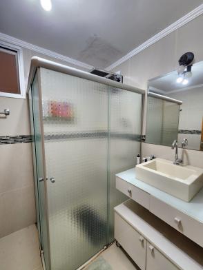 3 dormitórios, ar condicionado e armários, sala de estar com sacada, sala de jantar, ar condicionado, cozinha planejada, banheiro social com box blindex, lavanderia com banheiro.