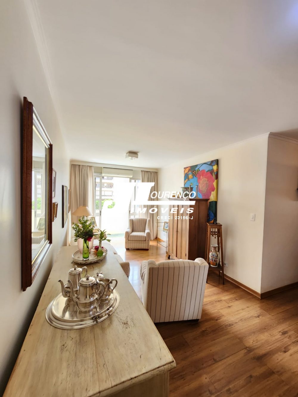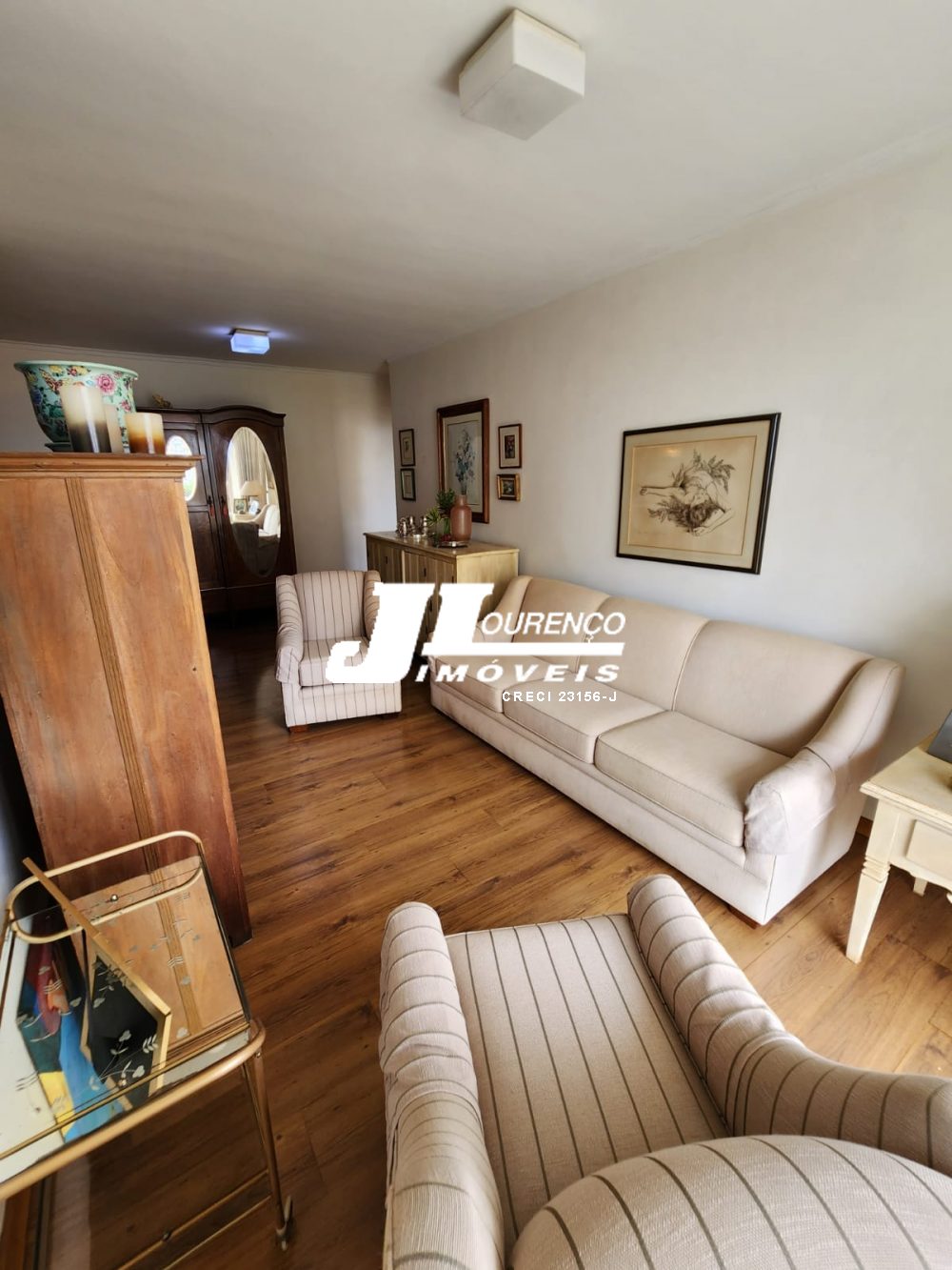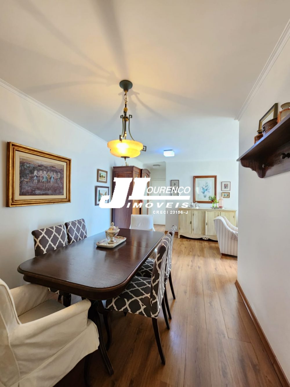 3 dormitórios sendo 1 suíte, armários, sala 2 ambientes com sacada, banheiro social, cozinha com armários, lavanderia, quarto e banheiro para funcionária.