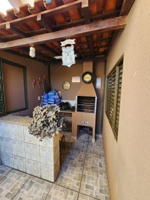 Quintal com churrasqueira, 1 quarto e banheiro.